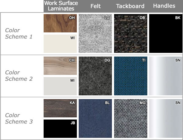 Finishes are available in 3 sophisticated color schemes, as shown below.